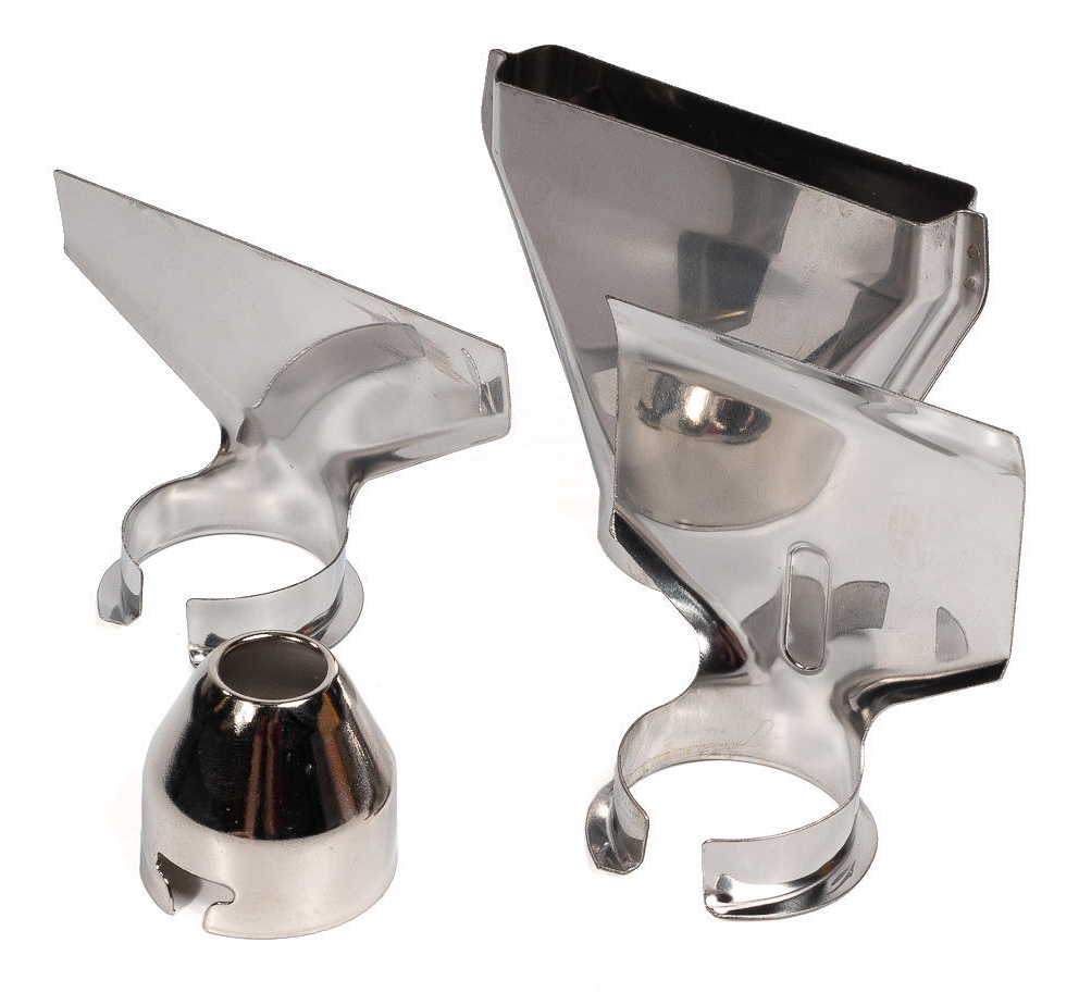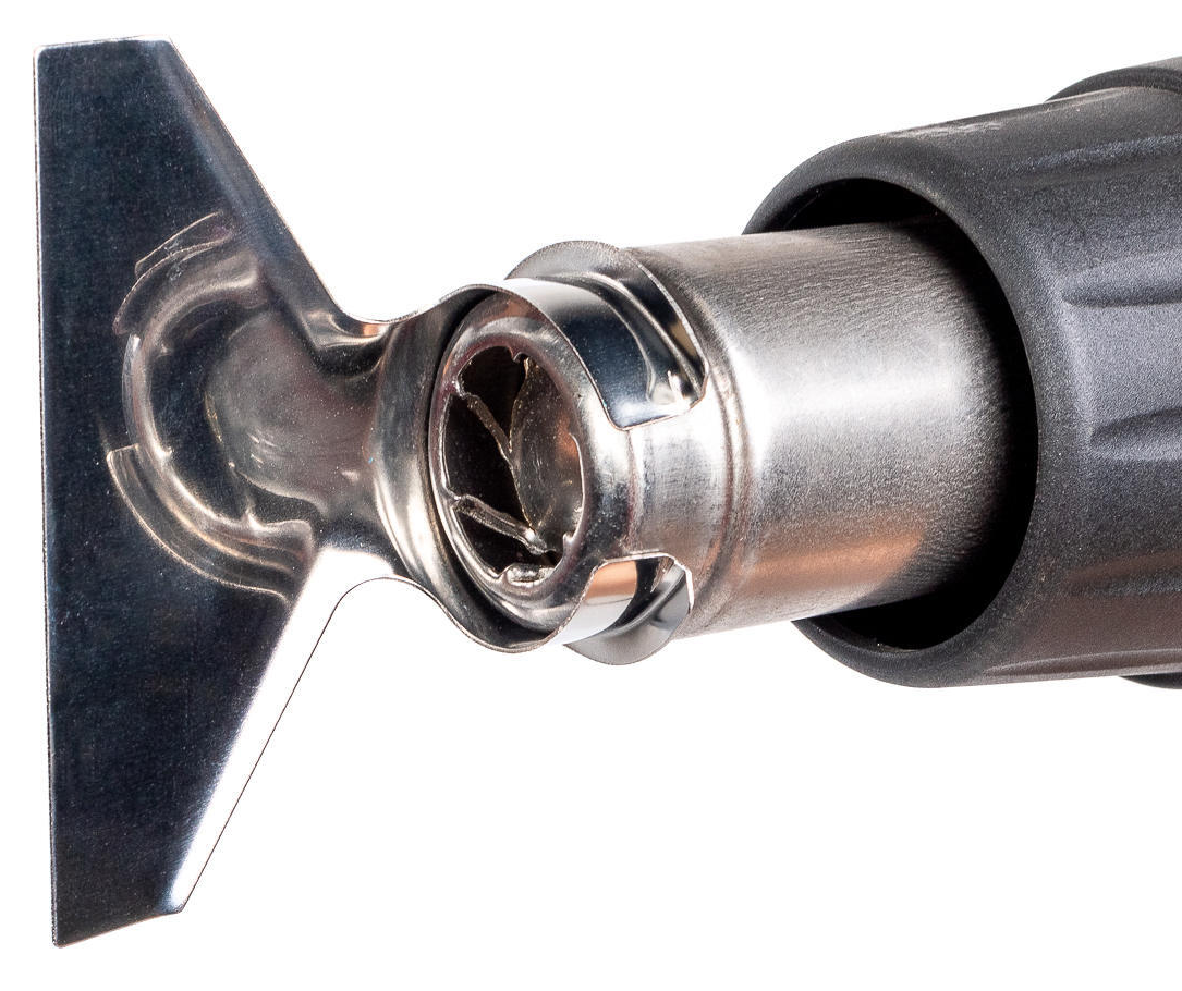 Четыре специализированные насадки строительного фена КВТ TT-2000-2 (редукционная, рефлекторная, широкая щелевая, стеклозащитная) расширяют его функциональность.