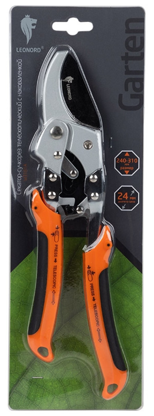Сучкорез Leonord / Леонорд W3161A плоскостной, телескопический с наковаленкой, ручной стальной, 310мм / садовый инструмент