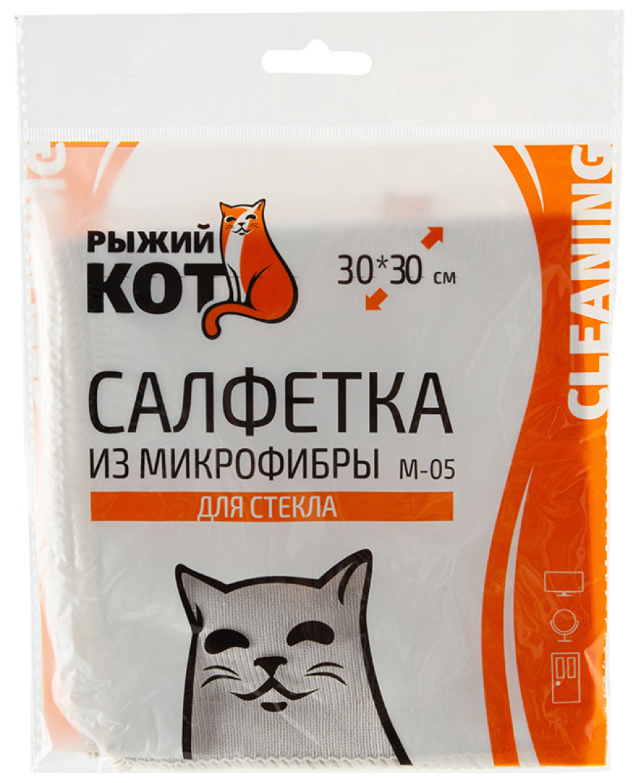 Салфетка для уборки Рыжий кот предназначена для уборки стеклянных поверхностей и оргтехники (окна, линзы очков, мониторы, зеркала и т. д.). Можно использовать для сухой или влажной уборки. Материал — микрофибра. Размер — 30×30 см. Цвет — серый. Плотность — 250 гp/м².