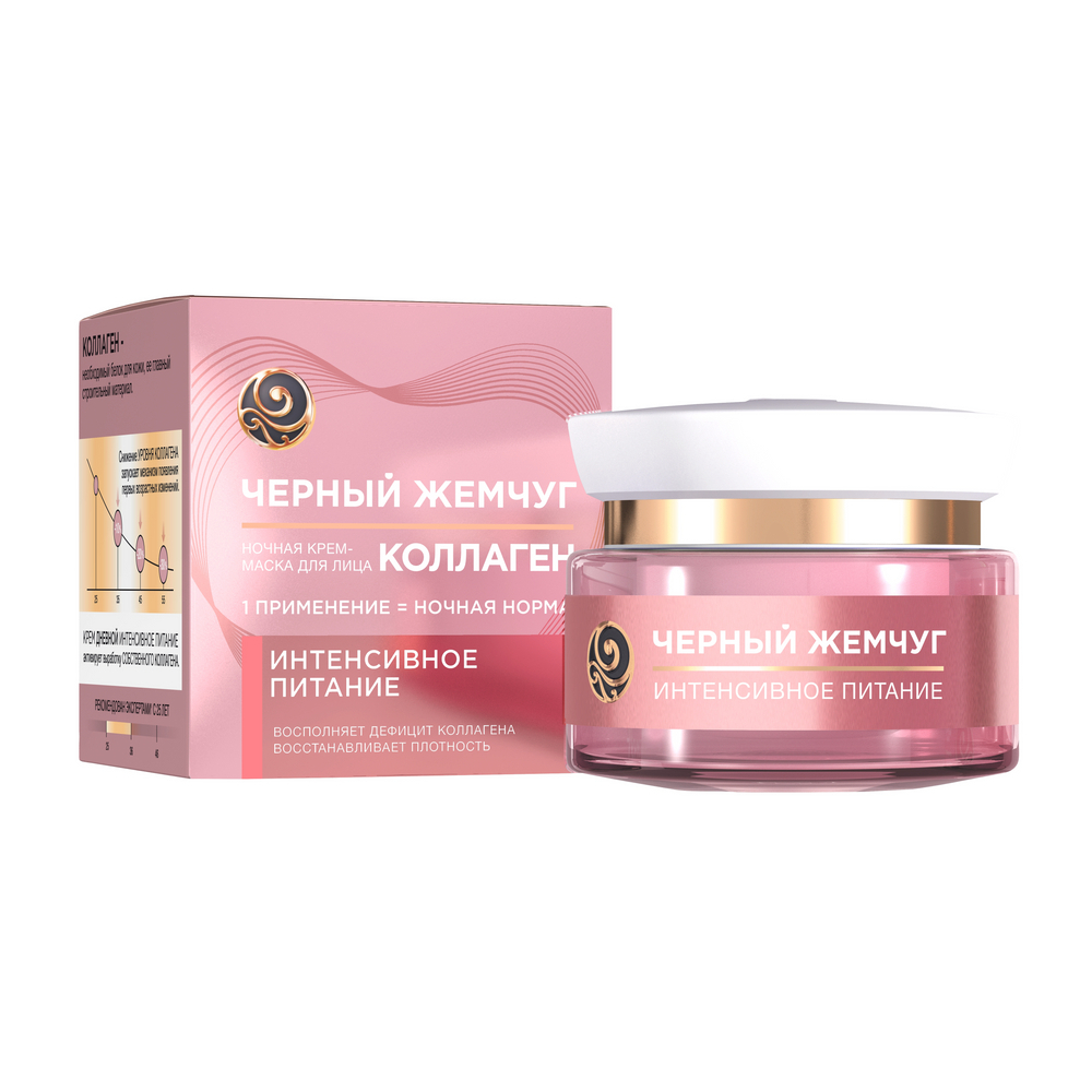 Черный жемчуг Крем-маска ночная Интенсивное питание с коллагеном 46мл / увлажняющее средство