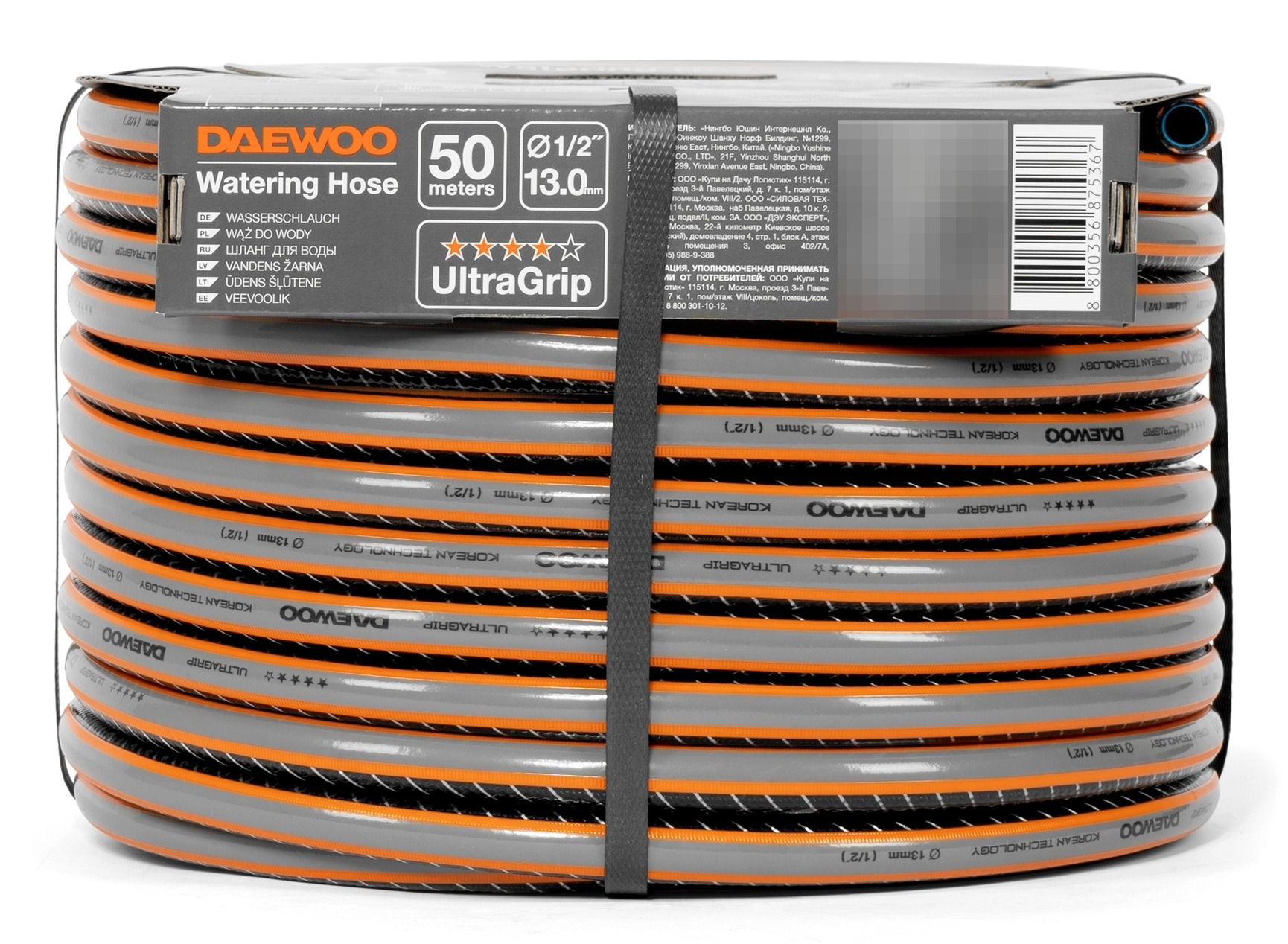 Шланг поливочный DAEWOO / Дэу UltraGrip армированный пищевой, из ПВХ, диаметр 1/2дюйма, 50м / все для сада