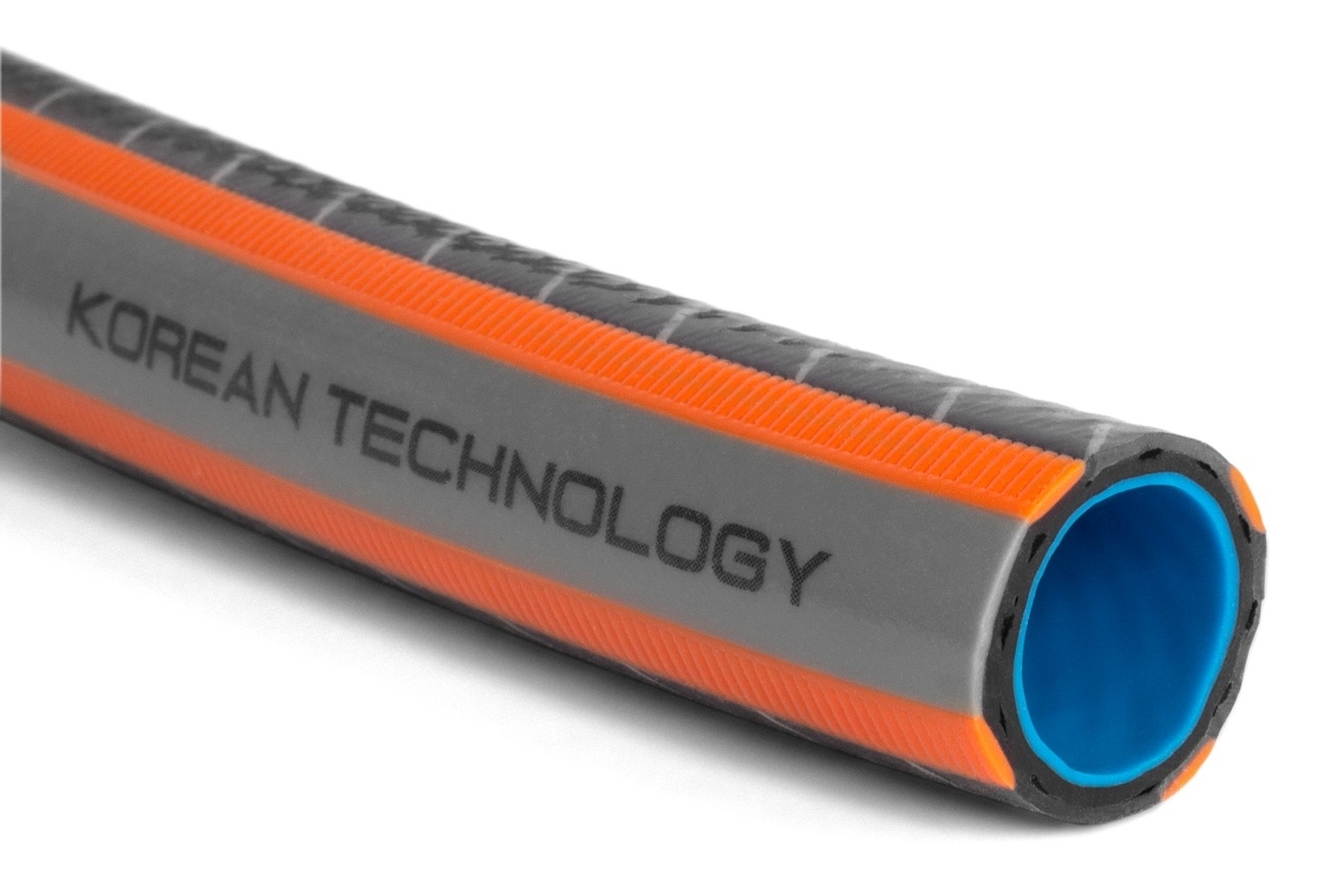 Высококачественное спиралевидное текстильное армирование, усиленное углеродными нитями , препятствует перегибам и скручиванию шланга. Шланг остается гибким и не деформируется. Специальный профиль Power Grip обеспечивает идеальное крепление фитингов базовой системы полива DAEWOO. Надежное соединение даже при высоком давлении. 4 слоя из высококачественных материалов и утолщенные стенки шланга делают его устойчивым к давлению на разрыв до 35 бар, долговечным и износостойким. Шланг имеет специальное покрытие, которое защищает его от воздействия УФ и низких температур, что позволит хранить его на улице или в неотапливаемом помещении. Допустимый диапазон температур от -10° до 60°.