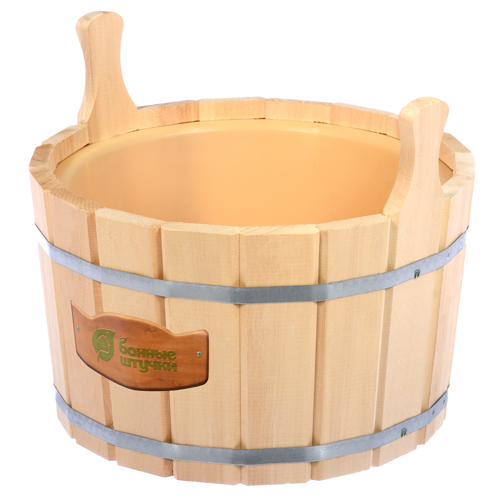 Ушат для бани Банные штучки Шайка, с вставкой из пластика, из древесины липы, бежевый, объемом 12л / товары для дома