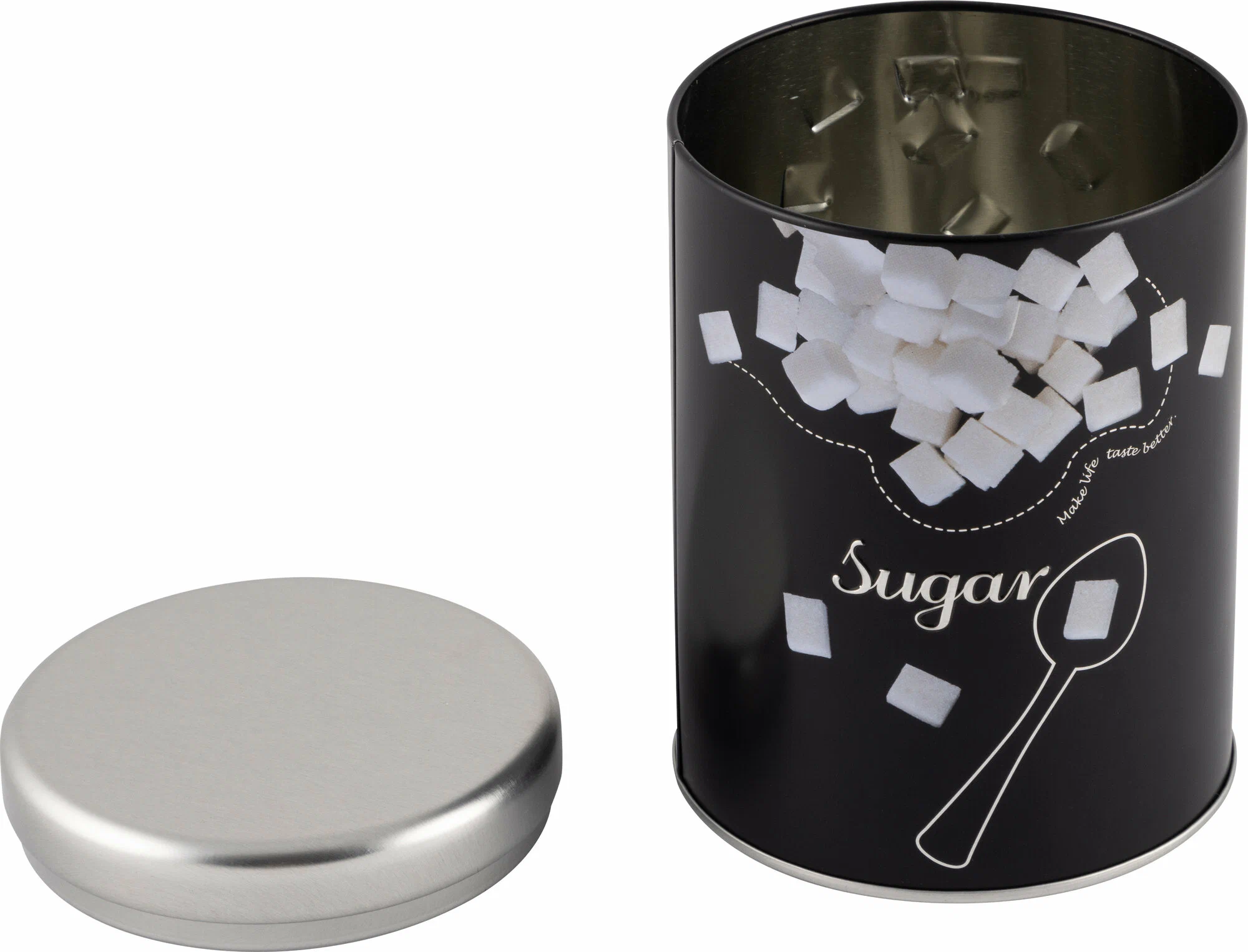 Банка для сыпучих продуктов Сахар с крышкой, металлическая, черная, объемом 900мл / товары для дома