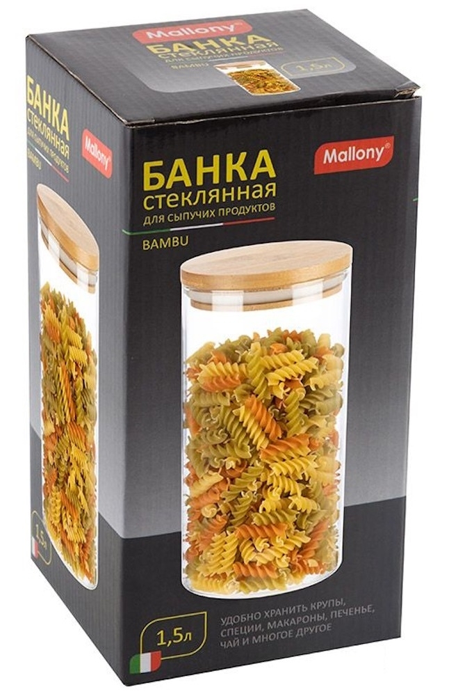 Банка для сыпучих продуктов Mallony / Маллони Bambu с крышкой, стеклянная, прозрачная, объемом 1500мл / товары для дома