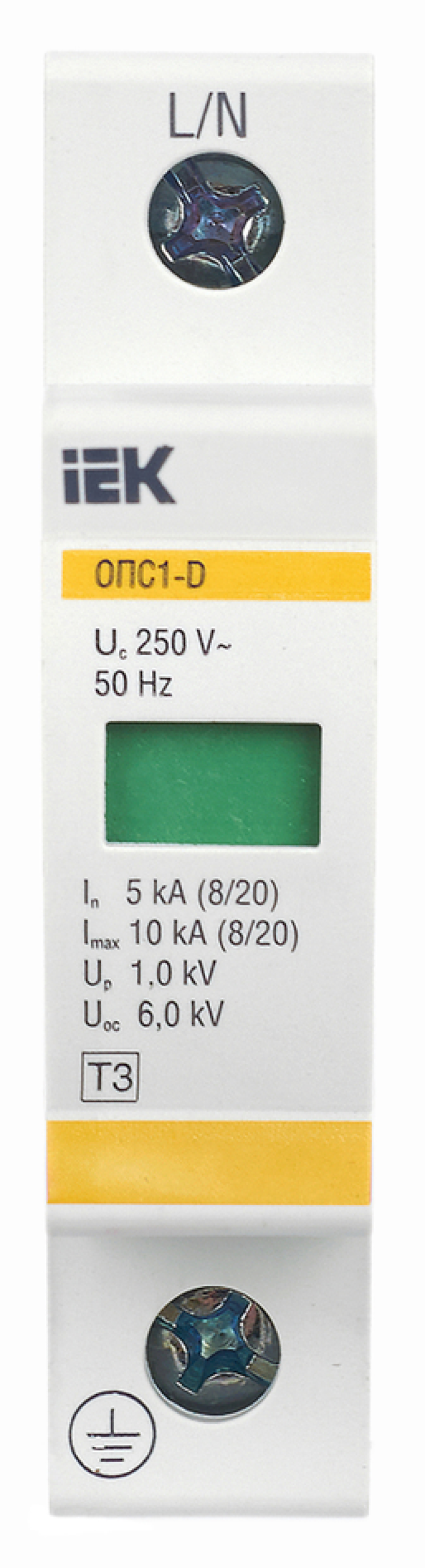 - Ограничитель перенапряжения IEK Karat ОПС1-D модульный, однополюсной, 230В, 10кА, 5кА, IP20 - 1шт.