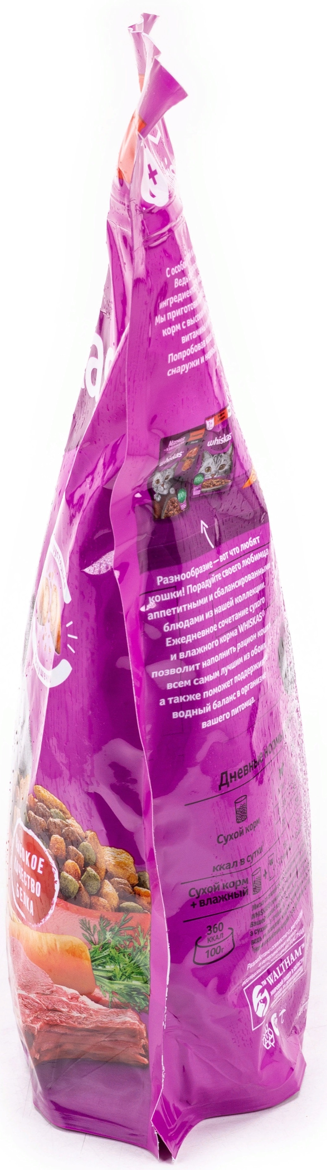 Хотите наблюдать у себя дома здорового и энергичного питомца? Обеспечьте его правильным питанием. Поможет в этом корм для кошек сухой Whiskas подушечки с говядиной.