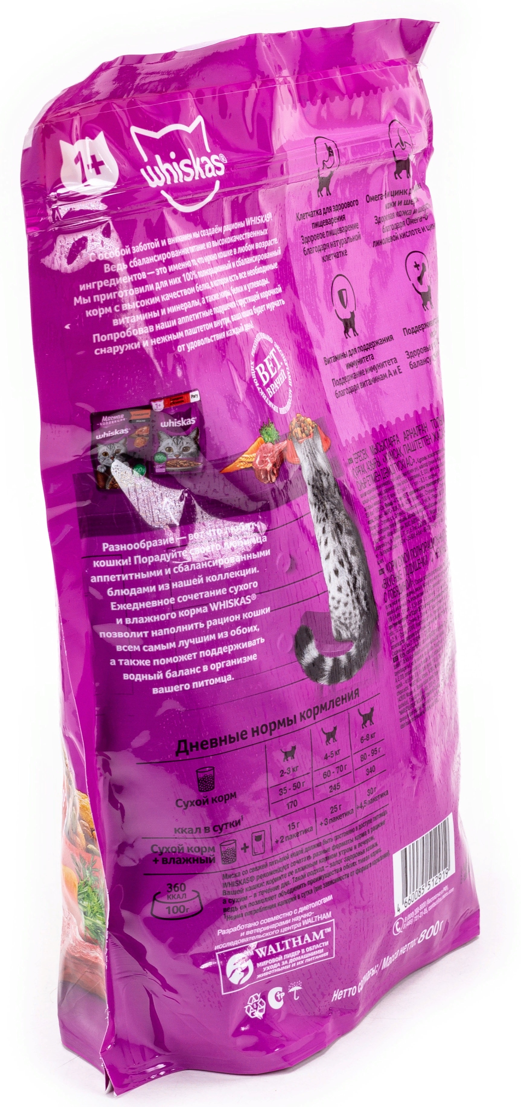 Нужно помнить, что смешивать в одной миске сухой и влажный рационы не рекомендуется. Кроме того, у вашей любимицы всегда должен быть доступ к чистой питьевой воде. Рационы Whiskas содержат все необходимые витамины и минералы, белки, жиры и углеводы, чтобы поддержать здоровье Вашей кошки от усов до кончика хвоста.