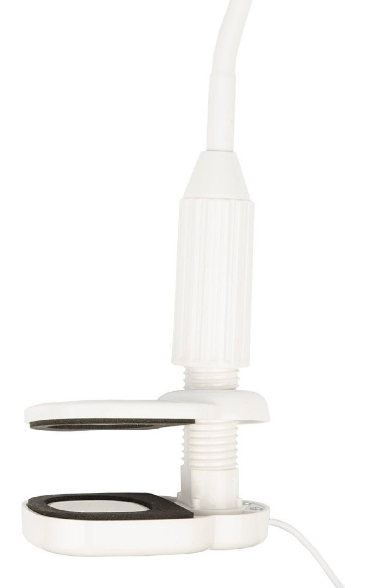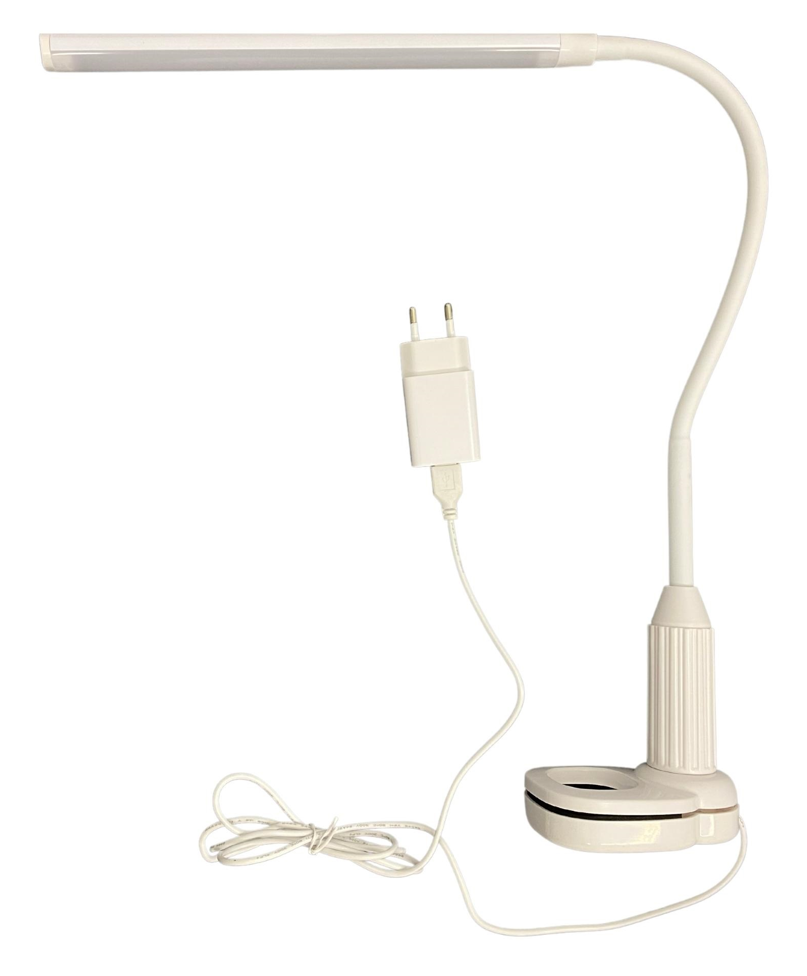 Светильник настольный светодиодный на струбцине TLD-572 White/LED/500Lm/4500K/Dimmer предназначен для освещения рабочего места. Не требует сборки. Гибкая ножка позволяет регулировать угол наклона и высоту светильника. Сенсорный выключатель с диммером расположен на плафоне светильника. Мощность — 7 Вт, что соответствует мощности лампы накаливания 45 Вт. Световой поток — 500 лм, цветовая температура — 4500 К. Срок службы до 50 000 часов. Корпус светильника изготовлен из пластика, окрашенного в белый цвет. Требуется подключение к электросети. В комплект поставки входят блок питания и провод. Габариты светильника — ДхШхВ 100×80×300 мм.