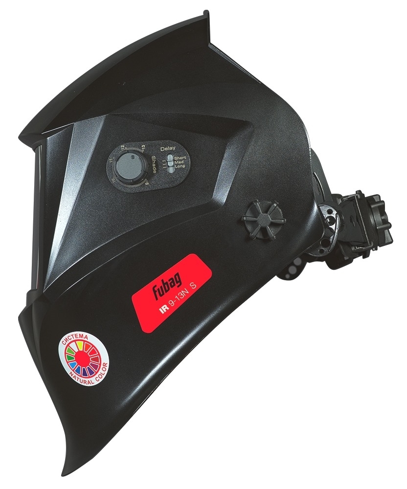 Маска сварщика «Хамелеон» IR 9-13N S FUBAG Сварочная маска «Хамелеон» IR 9-13N S с автоматическим светофильтром защищает глаза и лицо от искр, брызг и вредного излучения при нормальных условиях сварки. Сварочная маска с автоматическим светофильтром готова к использованию. Вам только нужно отрегулировать положение головного крепления. Сварочная маска «Хамелеон» IR 9-13N S предназначена для не продолжительных сварочных работ автосервисе, в гаражах, на даче. Светофильтр системы «Хамелеон» обеспечивает автоматическое затемнение при зажигании сварочной дуги и быстро возвращается назад в прозрачное состояние при ее отсутствии, что позволяет экономить время и всегда работать обеими руками. Скорость срабатывания составляет 1/25000 секунды. Возврат в светлое состояние регулируется и происходит с задержкой 0,25-0,8 секунд. Усовершенствованный механизм регулировки крепления маски позволяет настраивать угол наклона, сдвига вперед/назад и размер.