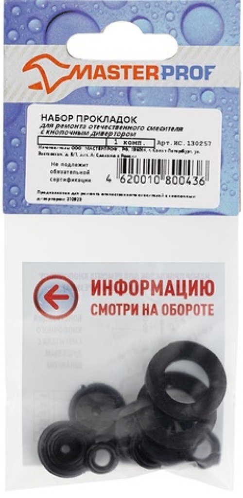 Набор сантехнических прокладок Masterprof / Мастерпроф для ремонта флажкового смесителя с золотниковым переключателем, из резины, 13шт. / водоснабжениеАрт. 7123В наличии97 ₽/шт -