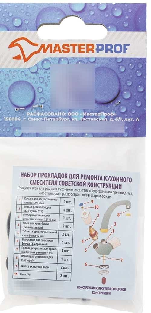 Набор сантехнических прокладок Masterprof / Мастерпроф для ремонта кухонного смесителя двухвентильного, советского типа, из резины, 17шт. / водоснабжение