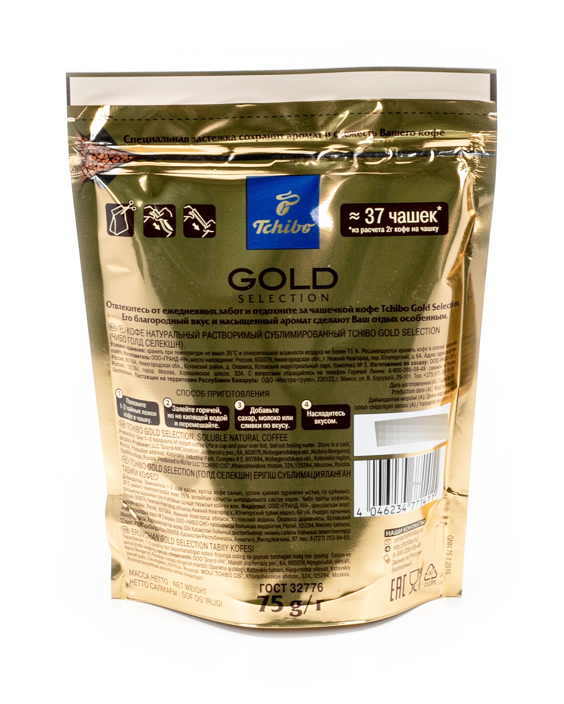 Растворимый кофе Tchibo Gold Selection имеет тонкий классический аромат, который подчеркивает восхитительный вкус кофейных зерен.