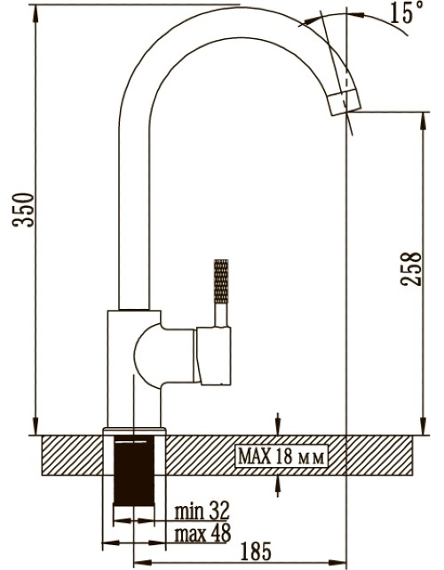 - Высота излива, мм