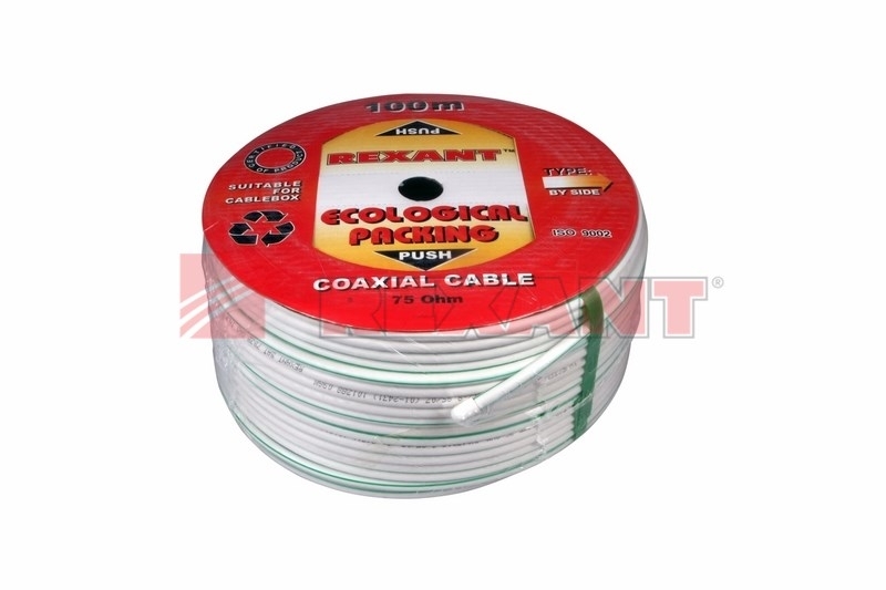 - Кабель REXANT SAT 703B Indoor Cu/Al/Сu 75 Ом коаксиальный, медь бухта белый, длина 100м, 01-2431-50 - 1шт.