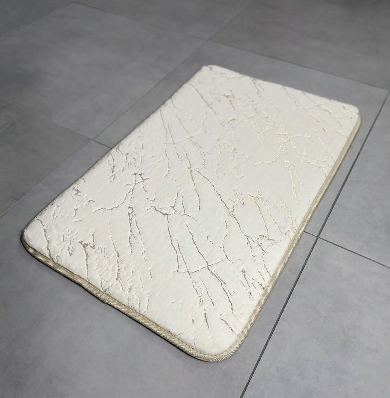 Коврик для ванной FORA / Фора MARBLE из микрофибры, цвет айвори с золотом, размером 80×50см / товары для дома