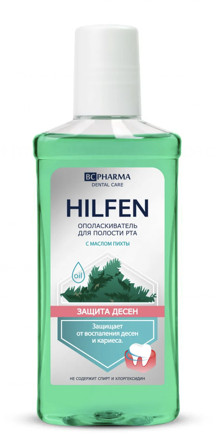 Профилактический ополаскиватель для полости рта ВС Нilfen Защита десен с маслом пихты имеет самый мягкий вкус в линейке ополаскивателей и сочетает в себе сразу 3 действия, позволяя достичь максимальной защиты всей полости рта.