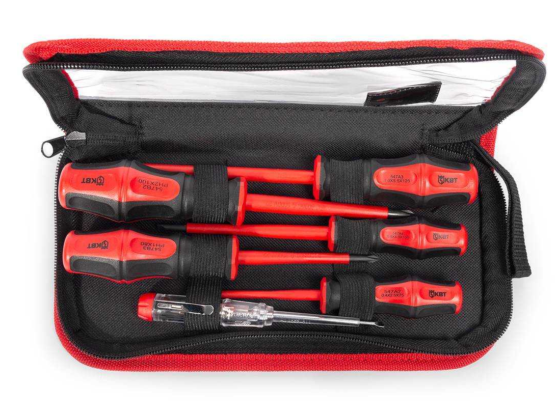 - Набор отверток КВТ Профи НИО-06 для диэлектрических для работ под напряжением до 1000 В, в тканевом чехле, 6 предметов - 1шт.