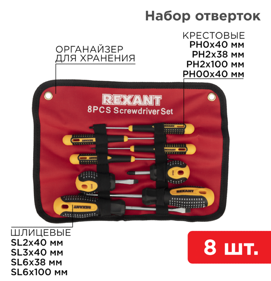 - Набор отверток REXANT в тканевом чехле, 8 предметов - 1шт.