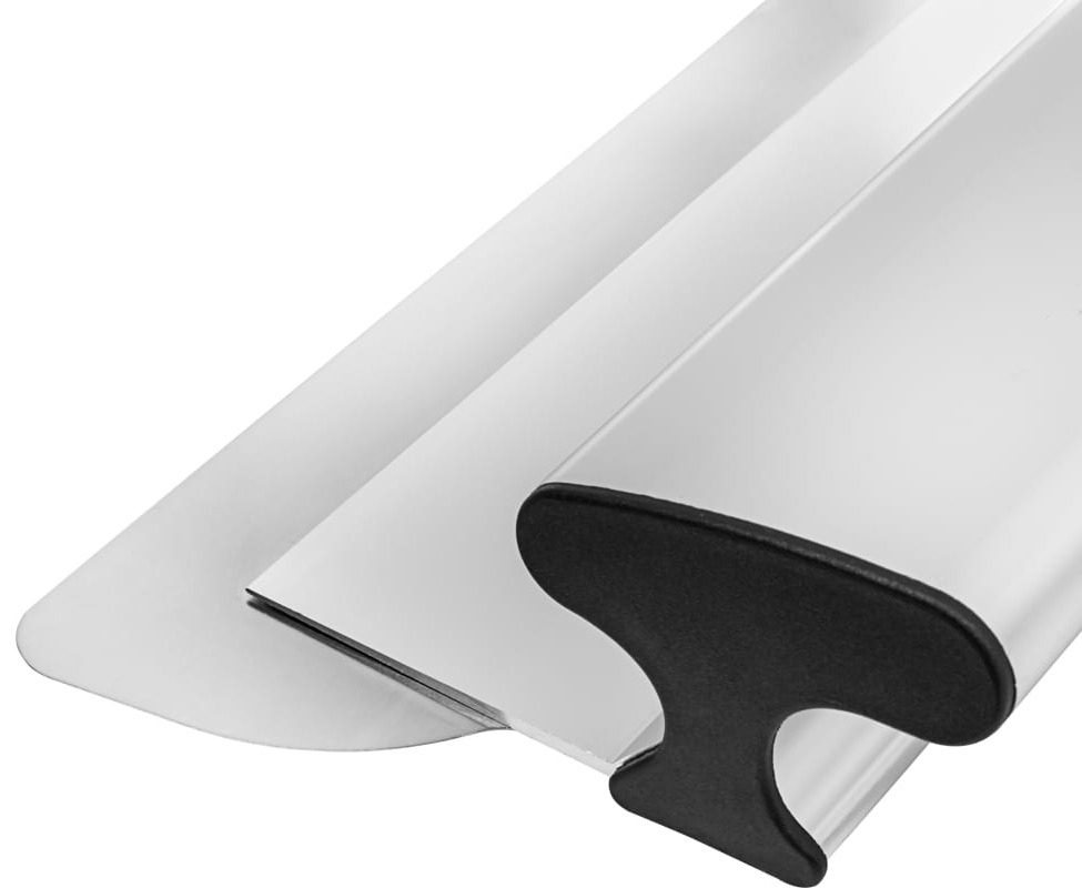 Финишный h-образный шпатель «DLT Finish SILVER» — это профессиональный шпатель с эргономичной алюминиевой рукояткой который обеспечивает быстрое и идеальное разравнивание шпаклевочных масс. Малярный профессиональный шпатель «DLT Finish SILVER» применяется для нанесения и разравнивания декоративной штукатурки, стеклотканевой сетки, стеклообоев, нанесения и разравнивания шпаклевочных масс, при нанесении ручным и машинным способом. Значительно увеличивают производительность, позволяя эффективно обрабатывать большие поверхности за короткое время. Делает каждое движение мастера эффективным, не заставляя повторять одно и то же действие по несколько раз. Шпатели также подходят для работы с декоративной штукатуркой. Не оставляет изъянов в виде неравномерных переходов уровней, шероховатостей, полос и т. д. В основе шпателя эргономичная алюминиевая ручка. Качественное эластичное лезвие шпателя изготавливается из легко очищаемой, высокоустойчивой к истиранию нержавеющей стали.