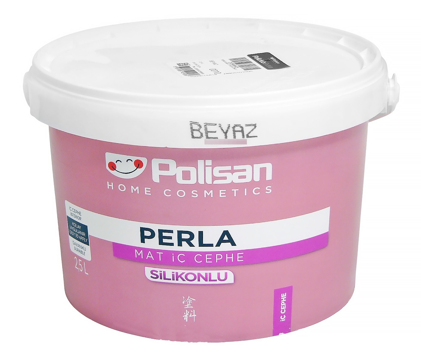 Краска для стен и потолков Polisan / Полисан Perla Mat Silikonlu силиконовая, водоэмульсионная, матовая белая, база A, 2.5л / лакокрасочные материалы