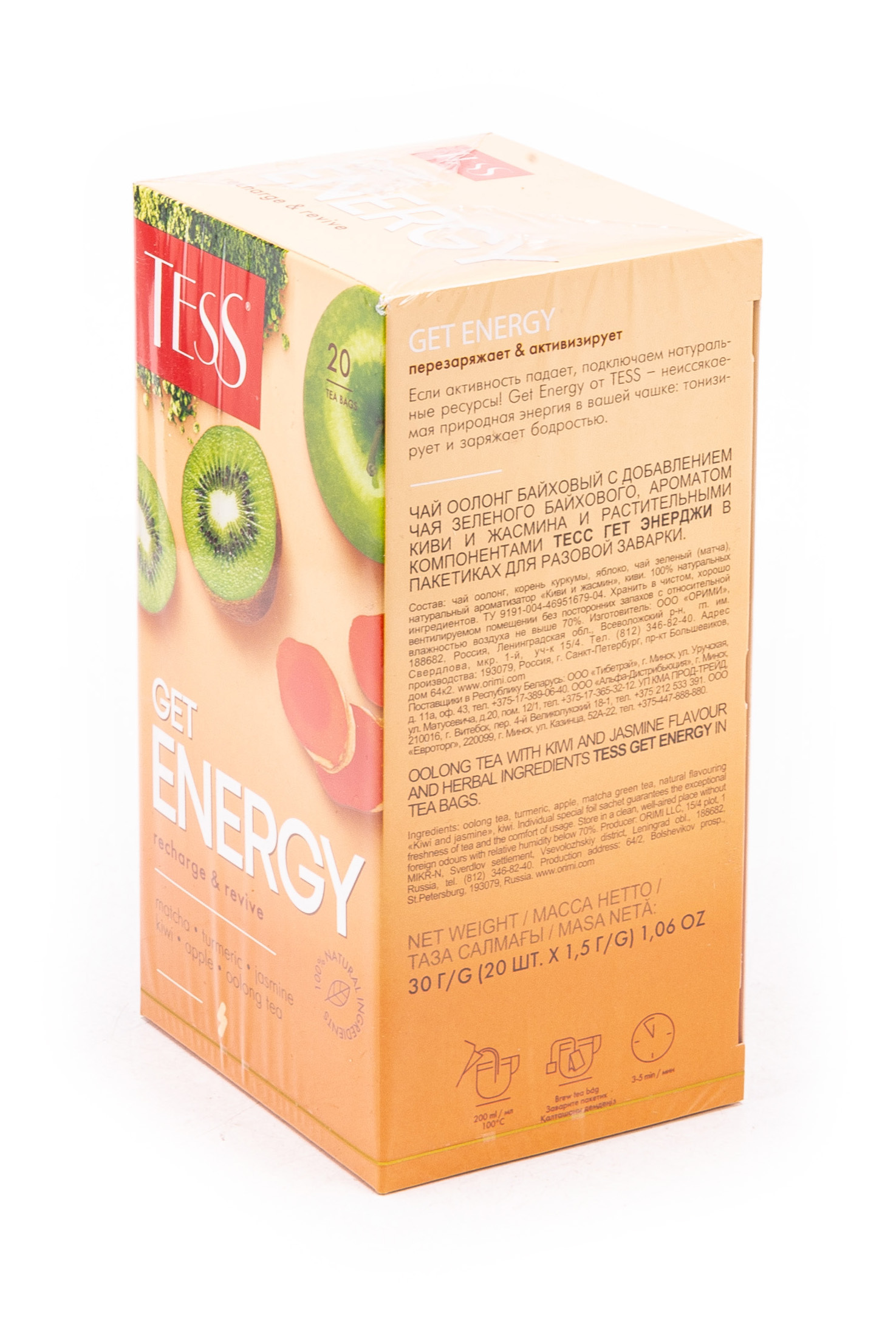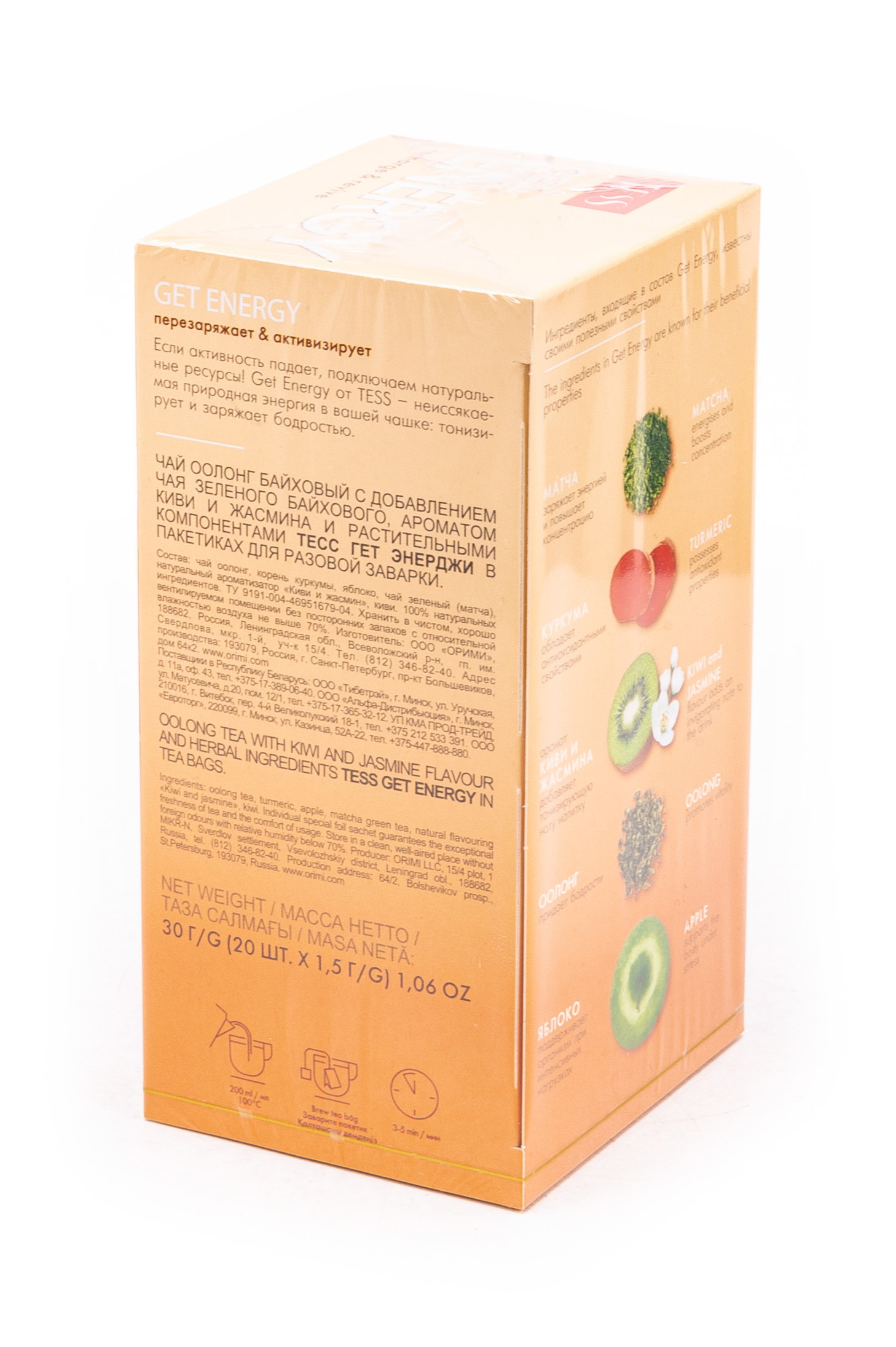 Чай в пакетиках Tess / Тесс Get Energy зеленый с ароматом киви и жасмина, упаковка 20пакетиков / горячие напитки