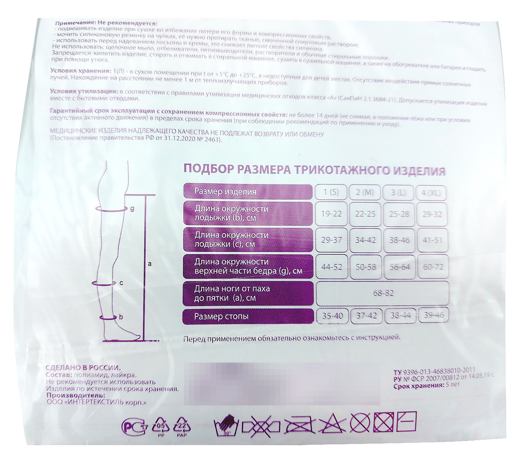 Чулки выполнены из лайкры и полиамида. Материал приятно прилегает к телу, не вызывая дискомфорт. Благодаря отверстию под пальцами легко без посторонней помощи регулировать состояние микроциркуляции. Чулки круглой вязки не имеют швов. Они особенно удобны для лиц, страдающих болезнями ног, а также в послеоперационном периоде.
