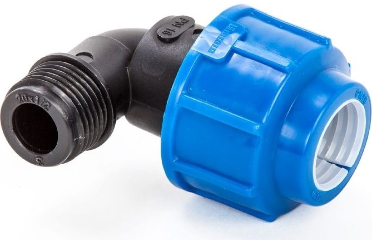 Отвод компрессионный Lammin / Ламмин переходной, для ПНД труб, из полиэтилена низкого давления, угол 90°, наружная резьба 1/2дюйма, диаметр присоединения 20мм / водоснабжение