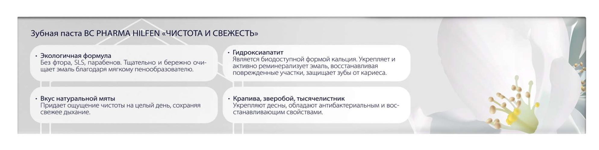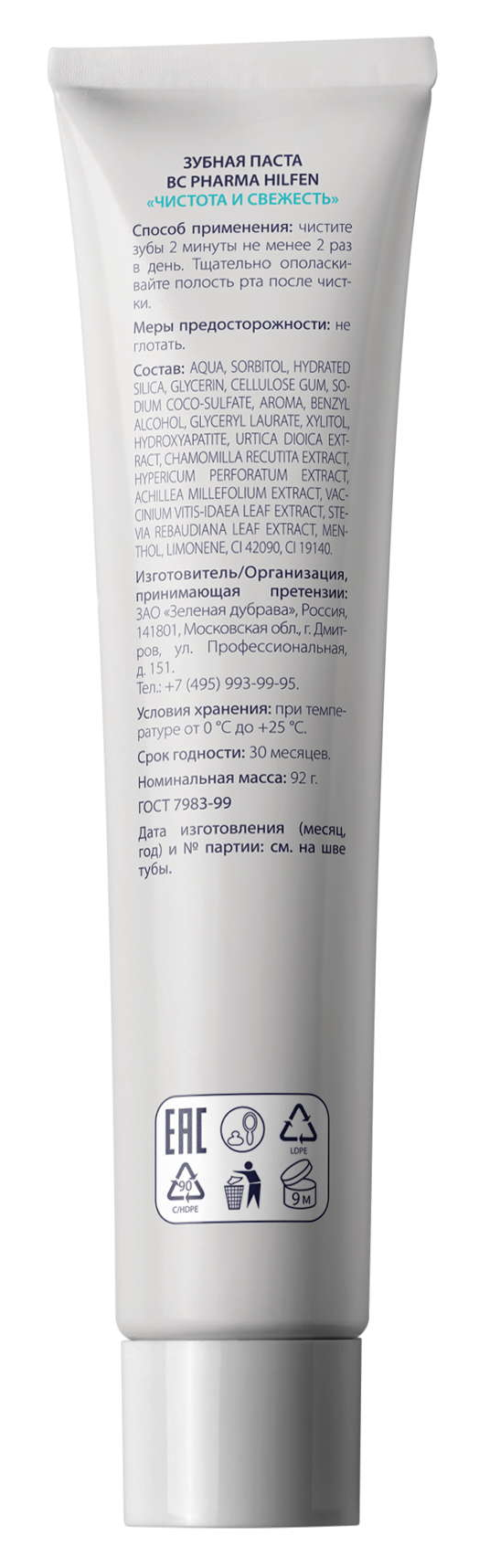 Зубная паста BC Pharma / Биси Фарма Hilfen Чистота и свежесть с гидроксиапатитом без фтора от кариеса, 92г / уход за полостью рта