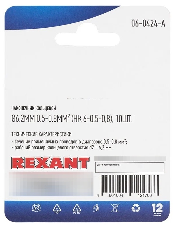 Монтаж электрооборудования не обходится без использования специальных инструментов и аксессуаров. К ним относится и наконечник REXANT 06-0424-А кольцевой. Он предназначен для обжатия многожильных проводов.