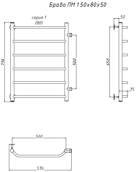 Водяной полотенцесушитель Браво ПМ 1 80×50 см, цвет хром. Предназначен для использования в системах центрального отопления и горячего водоснабжения. Используется для просушки влажных вещей и полотенец, а также дополнительного обогрева помещения. Изготовлен из пищевой нержавеющей трубы марки AISI 304, которая отличается стойкостью к высоким температурам и образованию коррозии, выдерживает значительные перепады давления.