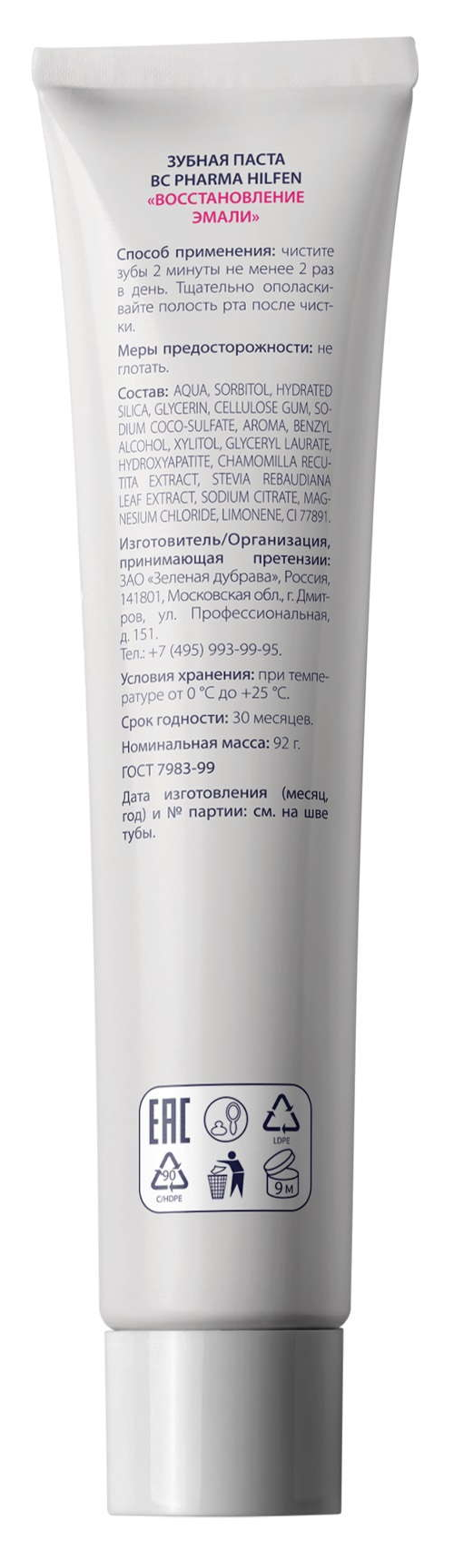 Зубная паста BC Pharma / Биси Фарма Hilfen Восстановление эмали с биодоступным кальцием без фтора для чувствительных зубов от кариеса, 92г / уход за полостью рта