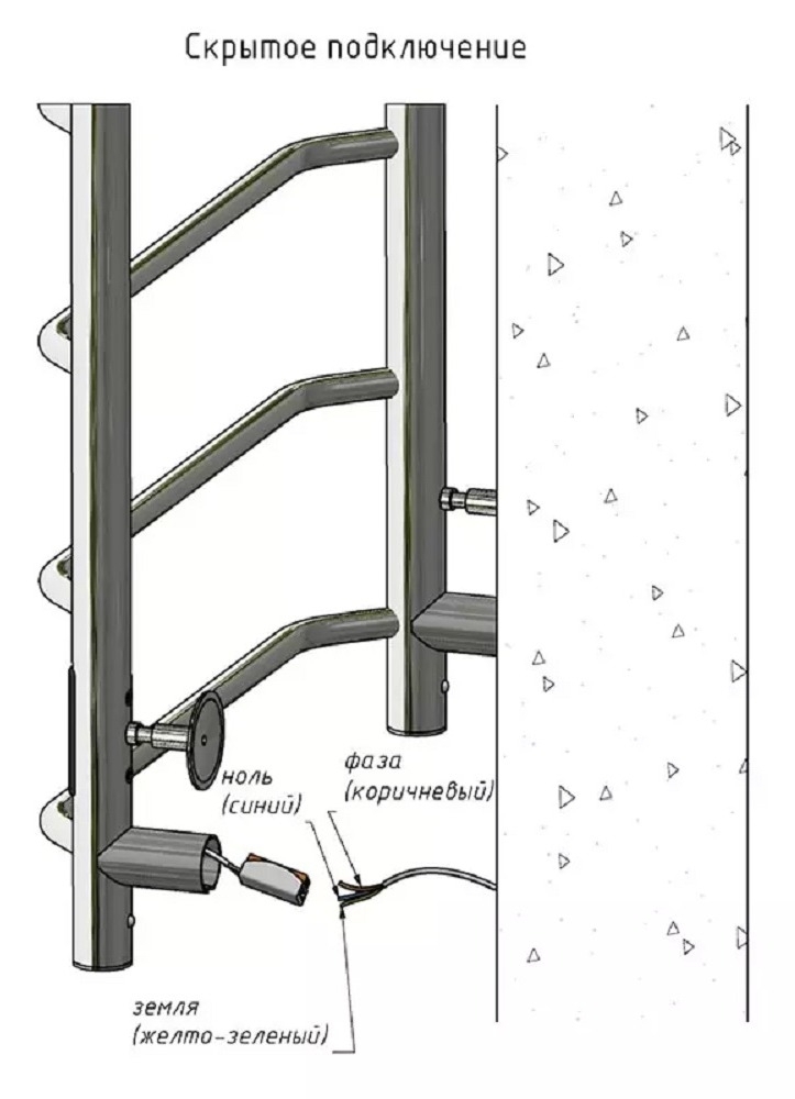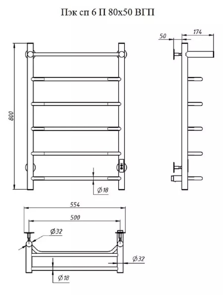 ПЭК — Полотенцесушитель электрический кабельный. Изделие производится из углеродистой стали. Вертикальные трубы d -32 мм., для горизонтальных вставок используется труба d — 18 мм. Нагревательным элементом в полотенцесушителе является греющий кабель — аналог «теплого пола», кабель заправляется внутрь каждой трубы и передает тепло на поверхность изделия. Во включенном состоянии постоянно поддерживается температура 45-550.