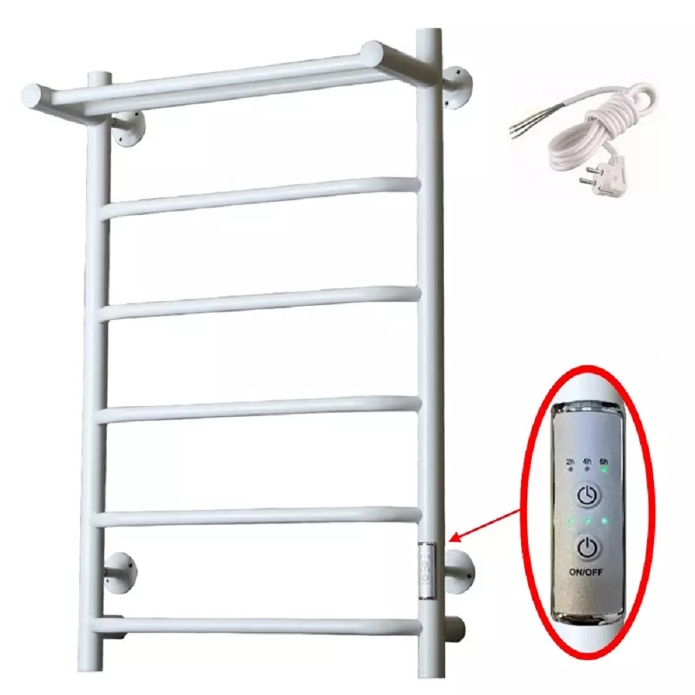 Экономичность: Полотенцесушитель снабжен панелью управления. Кнопка включения/выключения и таймер на 2 / 4 / 6 часов, который позволяет включать изделие на ограниченное время. Эта функция дает возможность экономить электричество. Мощность электрического прибора порядка 60W при стоимости 1 кВт — 5 руб несложно посчитать: 60W х 24 = 1,5 кВт в сутки. Стоимость эксплуатации изделия за сутки 1,5 кВт х 5 руб. = 7,5 руб. Максимальный расход электричества за месяц примерно 225 руб. При условии если сушка работает круглосуточно.