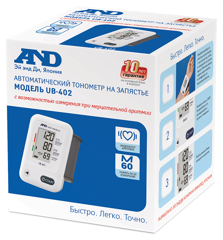 - Тонометр A&D UB-402 автоматический на запястье - 1 шт.