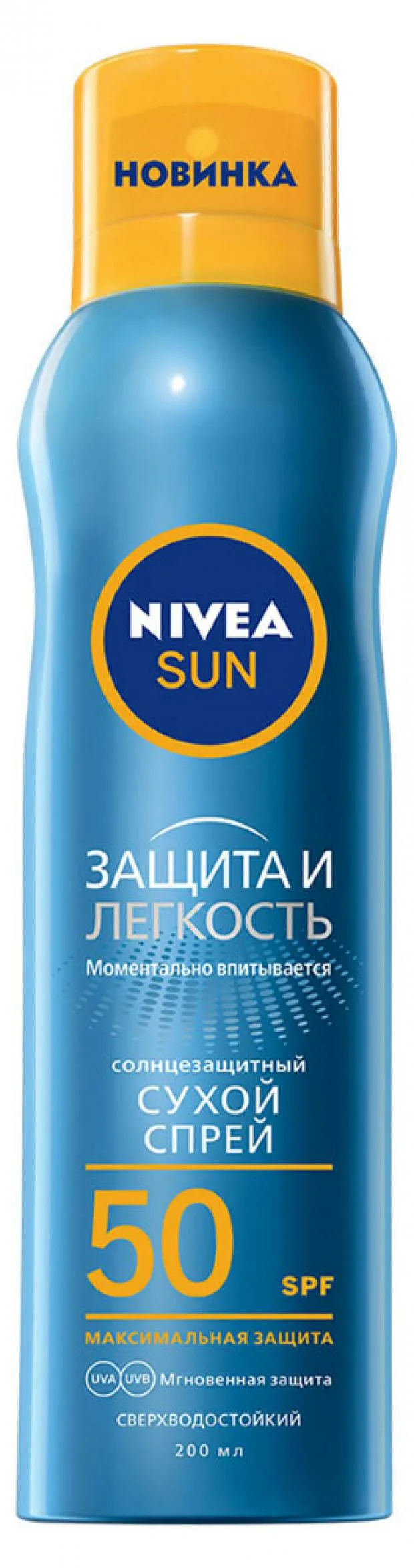 Сухой солнцезащитный спрей Защита и легкость SPF 50 с освежающей, легкой и нежирной формулой мгновенно впитывается, дарит коже приятный эффекти прохлады и обеспечивает высокоэффективную защиту от UVA/UVB-лучей. На 100% прозрачная формула не оставляет белых следов на коже. Формат спрея позволяет легко нанести средство, распыляя из любого положения.