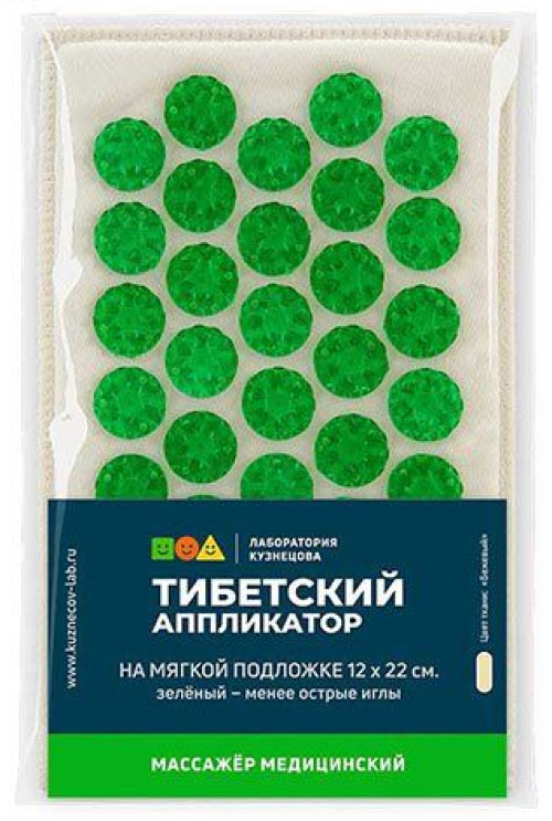 - Массажный коврик Лаборатория Кузнецова Тибетский аппликатор на мягкой подложке, зеленый, размер 12×22см - 1 шт.