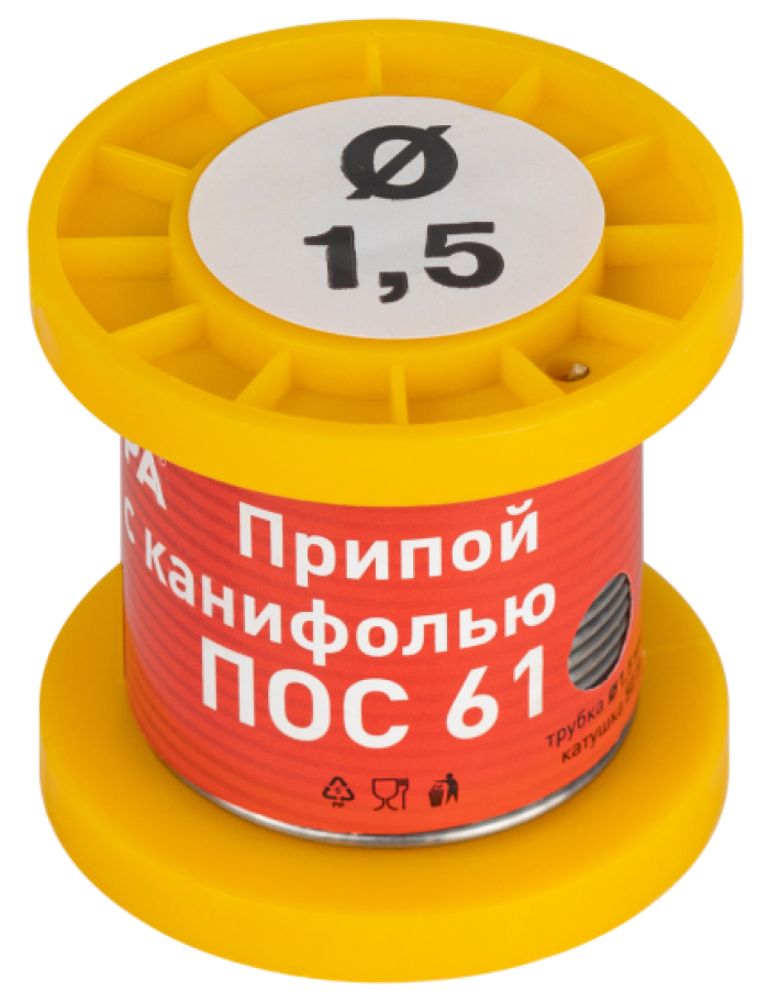 - Припой ЭРА ПОС-61, с канифолью, на катушке, Sn61/Pb39, сечение 1.5мм - 1шт.