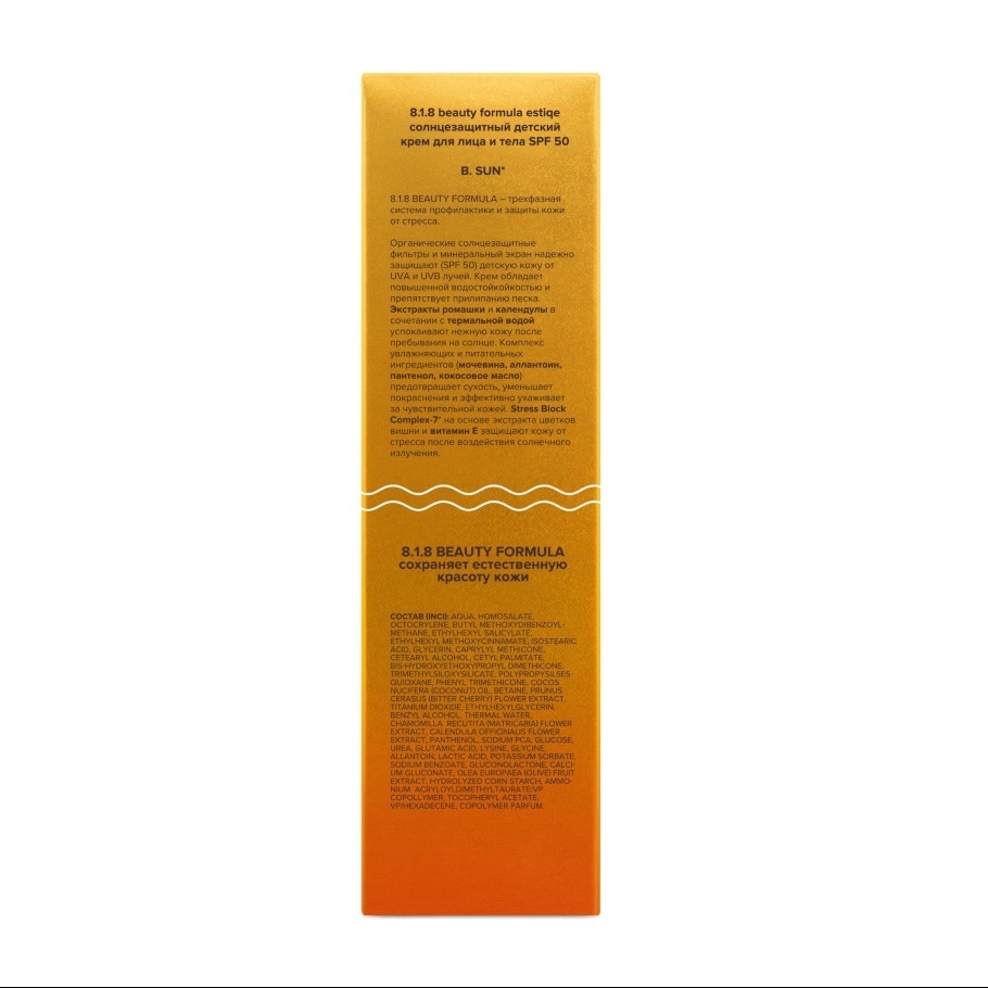 Детский солнцезащитный крем 8.1.8 beauty formula Estiqe обеспечивает надежную защиту нежной детской кожи от вредных ультрафиолетовых лучей. Формула специально разработана для чувствительной кожи малышей, обеспечивая максимальную безопасность и комфорт даже в самые солнечные дни.
