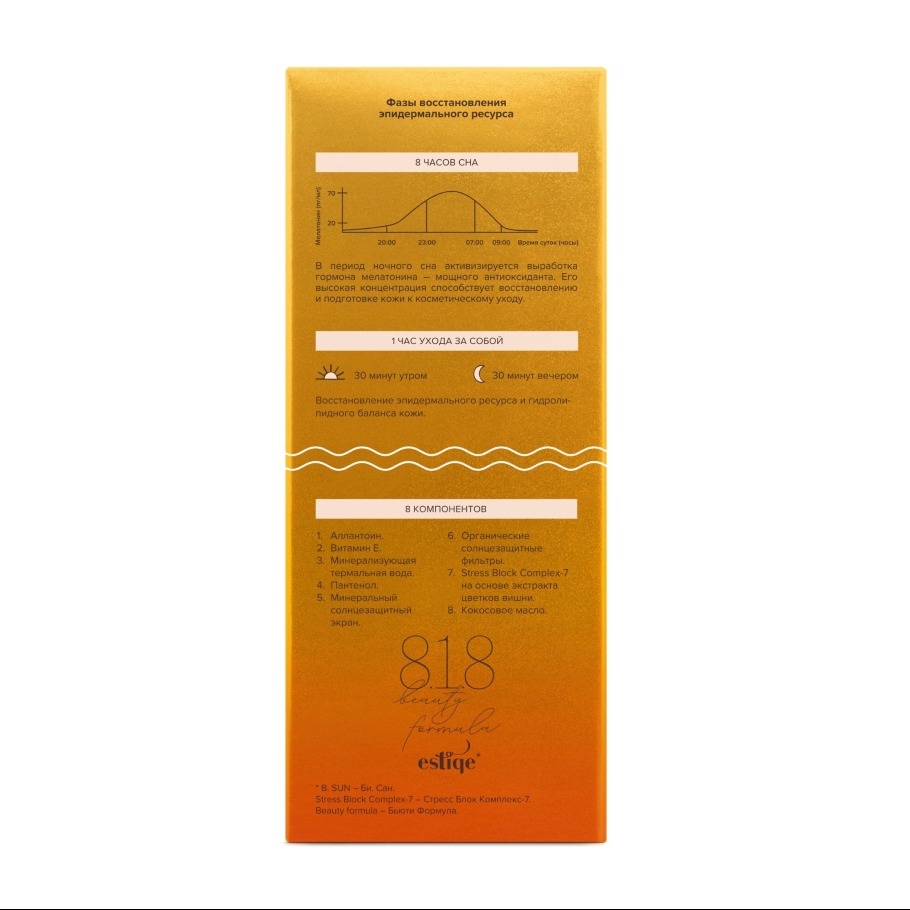 — STRESS BLOCK COMPLEX-7: комплекс активных компонентов, защищающих кожу от повреждений, вызванных агрессивным воздействием ультрафиолета.