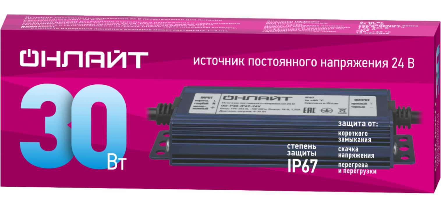 Драйвер для светодиодных светильников ОНЛАЙТ OD-P30-IP67-24V выделяется своими техническими характеристиками: