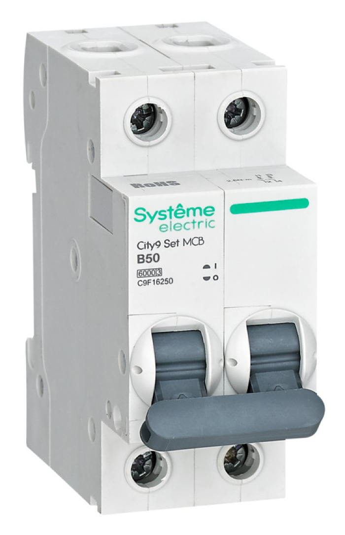 - Автоматический выключатель Systeme Electric City9 Set, 2P 50А характеристика B, 6кА, C9F16250 - 1шт.