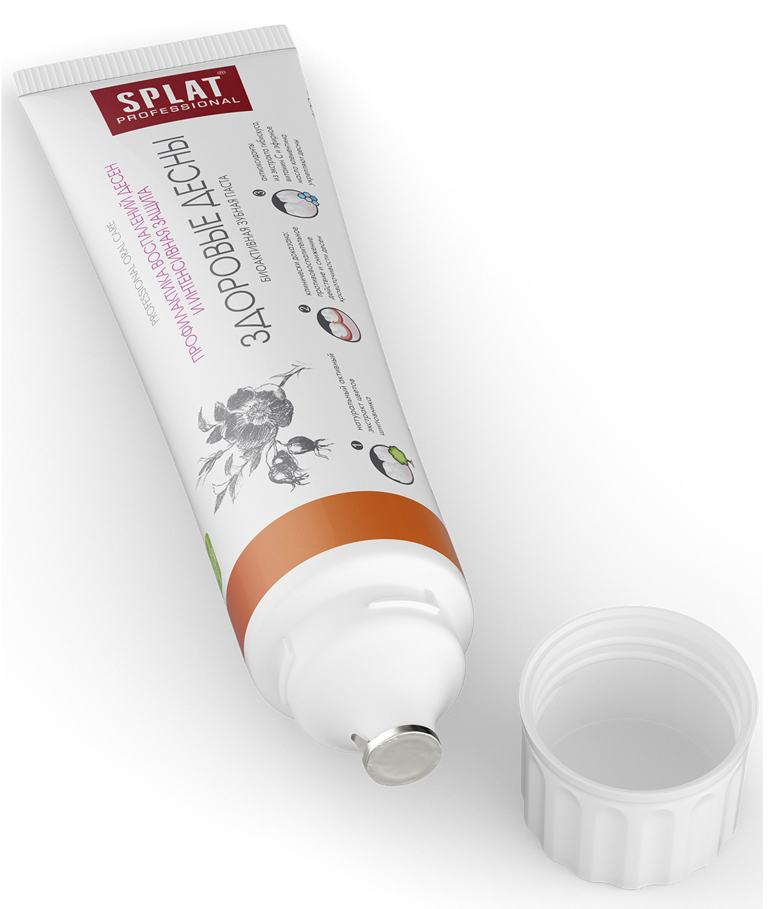 Splat Professional Здоровые десны Зубная паста с экстрактом цветов шиповника для профилактики и защиты воспалений десен укрепляет эмаль и защищает зубы. Паста зубная предназначена для ежедневной гигиены полости рта с целью обеспечения длительной защиты от кариеса, снижения растворимости и укрепления зубной эмали.
