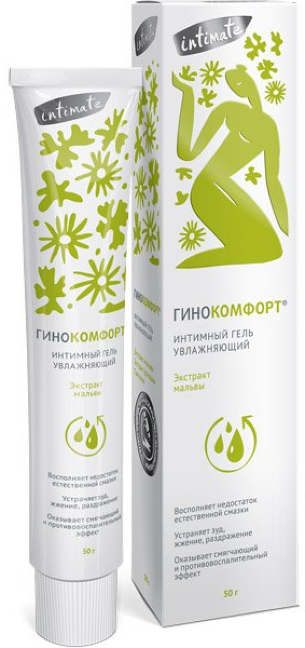 Интимный гель Гинокомфорт реализуется в индивидуальной упаковке. Объем — 50 мл. В своем составе содержит следующие компоненты: экстракт мальвы, экстракт ромашки, бисаболол, пантенол.