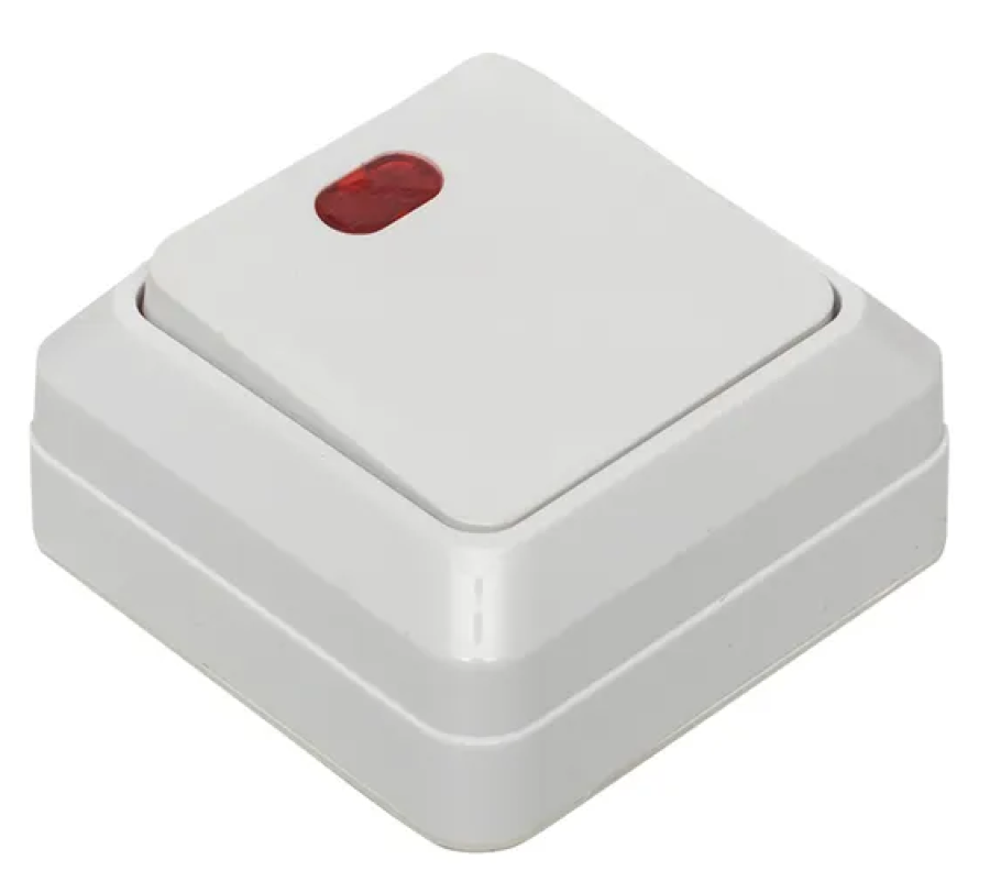 - Выключатель EKF Рим открытой установки с индикатором, 10А IP20 белый, 68х68х33мм одноклавишный, ENV10-121-10 - 1шт.