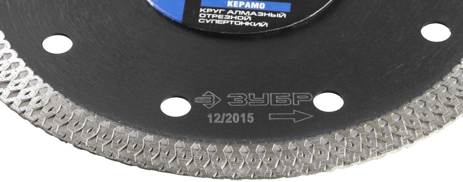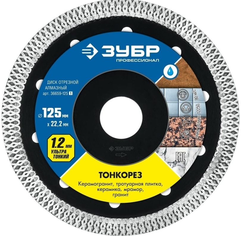 Диск алмазный Зубр Профессионал Керамо по керамограниту, мокрый рез, диаметр 125мм, посадочный 22.2мм, высота сегмента 10мм, рез 1.2мм / расходные материалы и оснастка