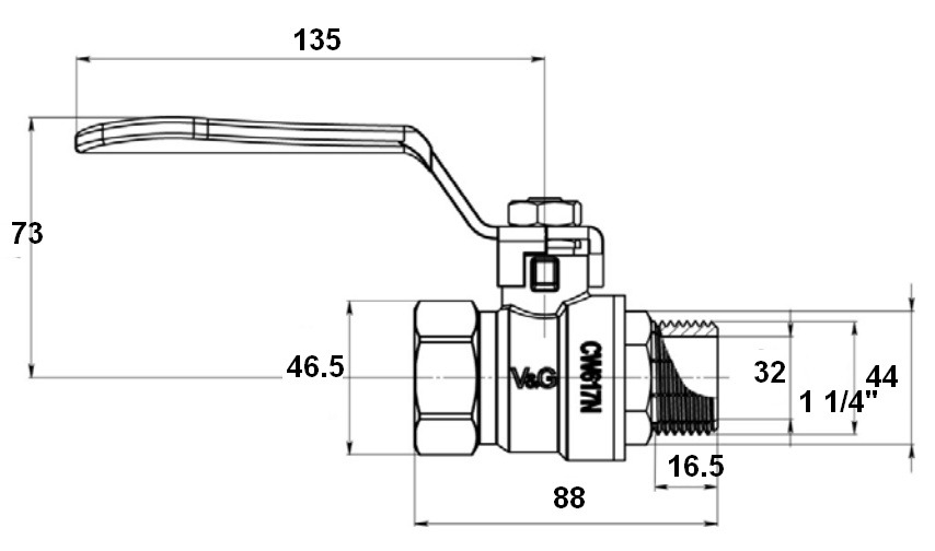 Кран шаровый V&G Optima резьба внутренняя-наружная ручка-рычаг 1 1/4" VG-101204 применяется в качестве запорной арматуры в трубопроводных системах (водопроводных, хозяйственно-питьевых, отопительных), транпортирующих любые среды, не агрессивные к материалам изделия.