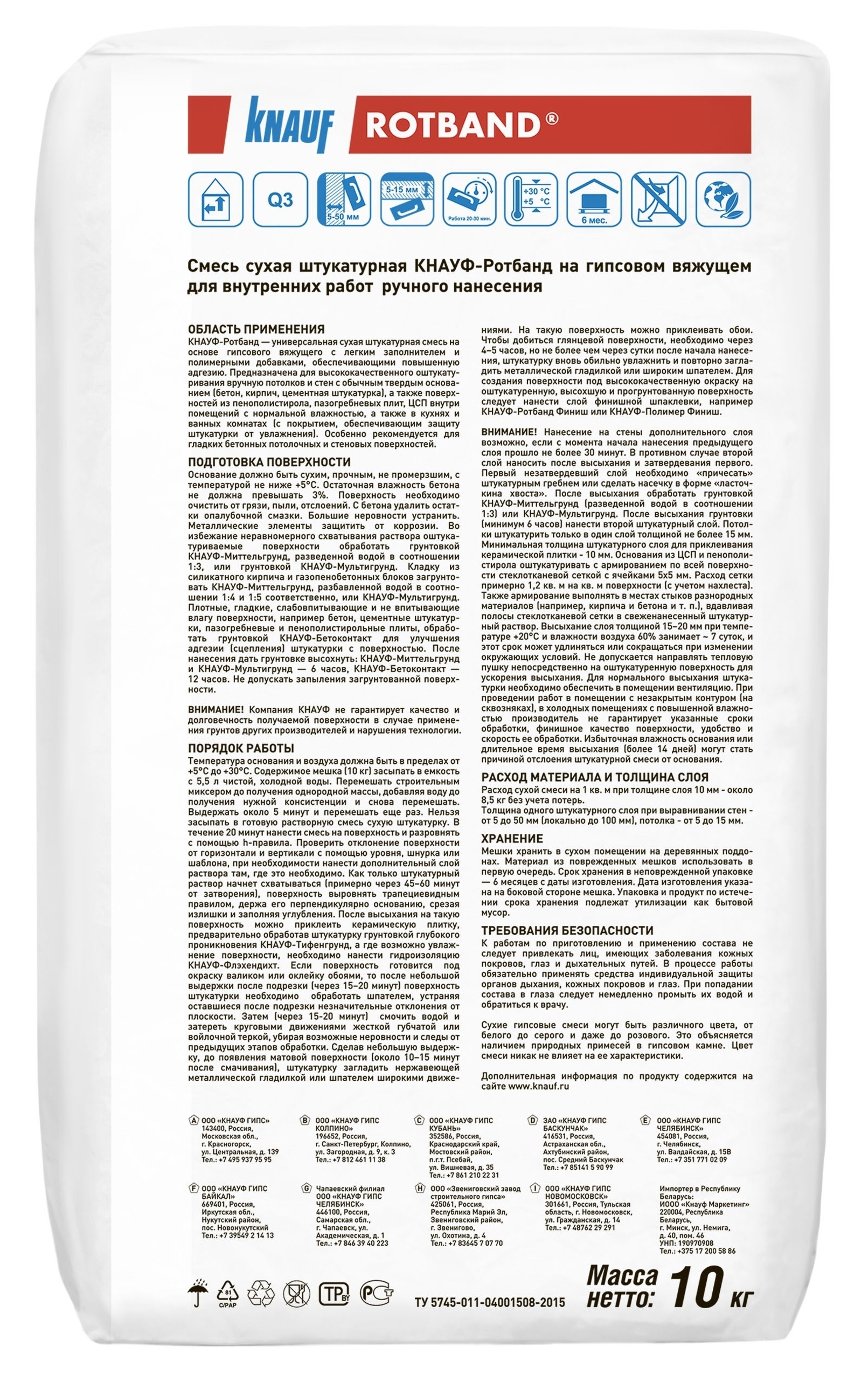 Штукатурка гипсовая Knauf / Кнауф ROTBAND универсальная для внутренних работ, серая, 10кг / строительные смеси