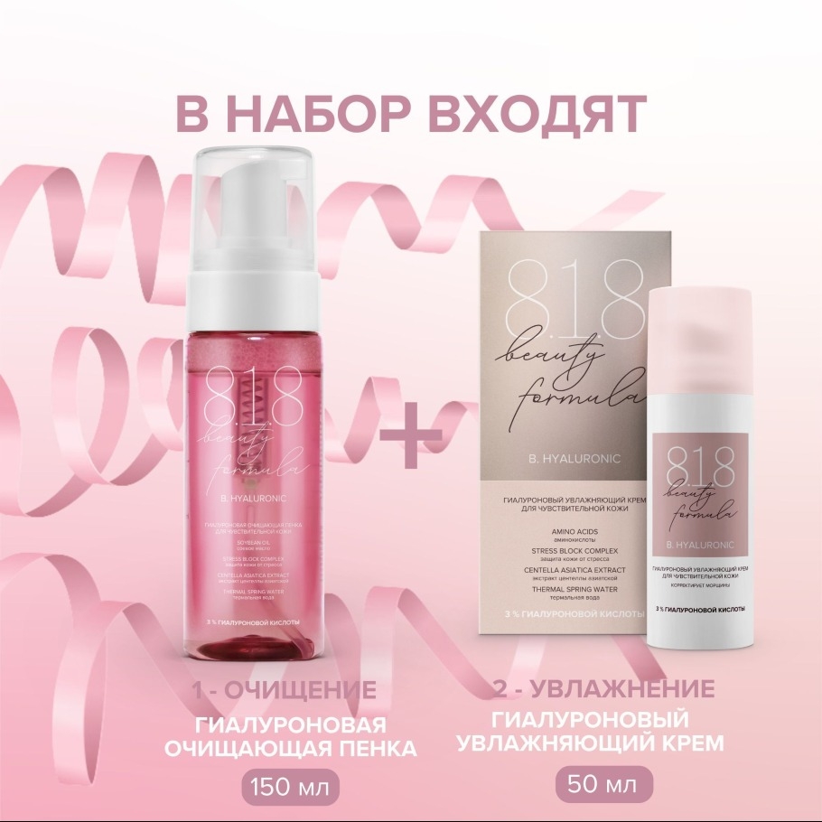 8.1.8 beauty formula / 8.1.8 Бьюти Формула Набор косметический для женщин 35+: крем увлажняющий гиалуроновый 50мл, пенка очищающая гиалуроновая 150мл / уходовая косметика