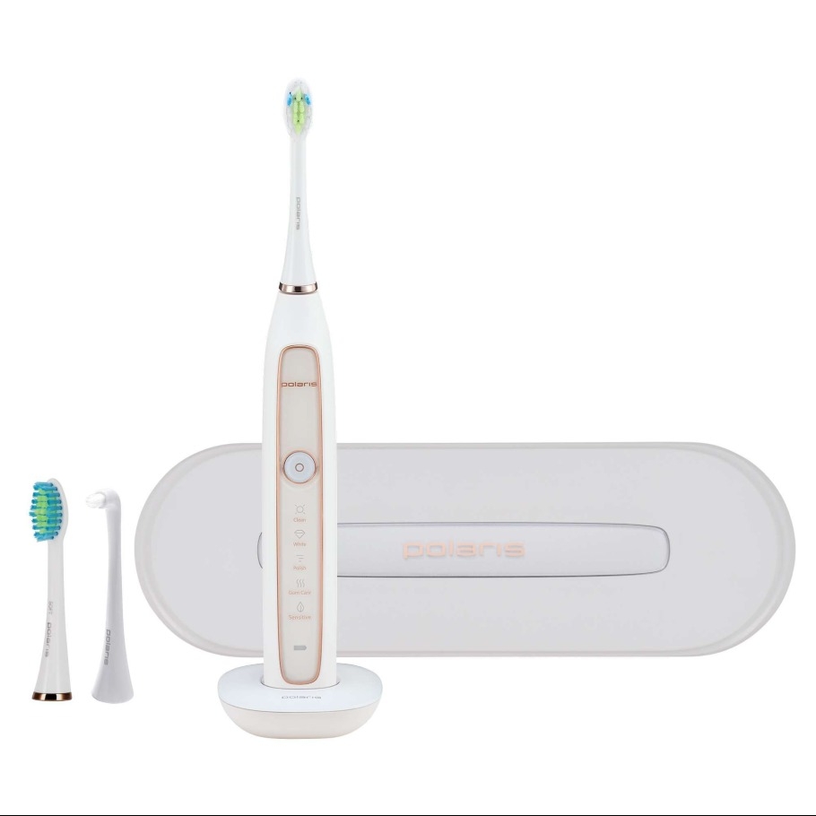 Электрическая зубная щетка Polaris / Поларис PETB 0101 TC звуковая со встроенным аккумулятором, средней жесткости, 5 режимов, 3 насадки в комплекте, бело-розовая / гигиена полости рта